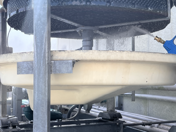 クーリングタワー水槽底のストレーナ部に藻やスケール等が溜まっていないかも要チェックです。