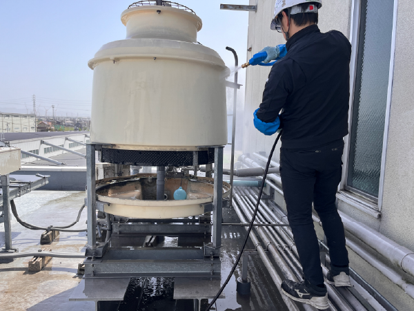 クーリングタワーは水質管理と清掃が非常に重要な設備です。