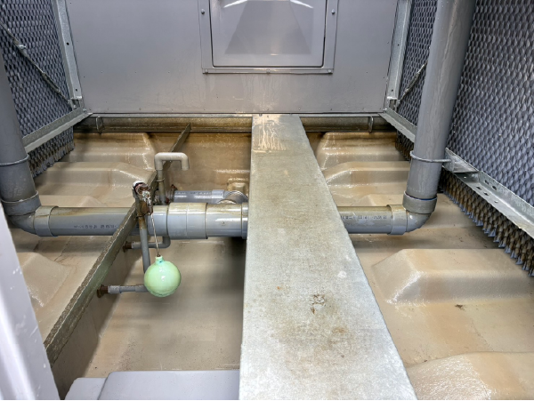 - クーリングタワーの水槽を目視点検し、水のにごりや異臭が無いかを確認しましょう。
