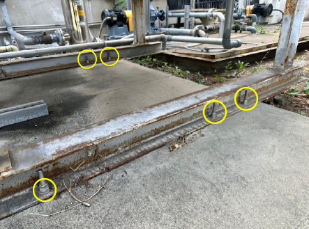 上に置かれている設備が基礎をはみ出して設置をする必要があり、重量を支えるために強度面が問題でした。