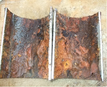 実際に配管を切断し、体積を計測してみると10%近く配管が閉塞している物がありました。(配管の使用年数はおおよそ25年程)