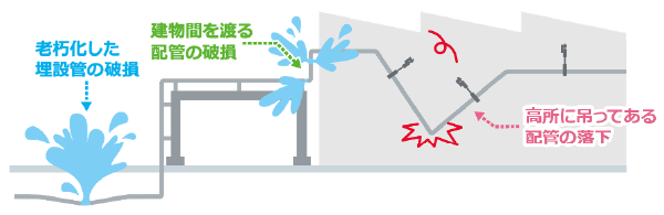 - 危険物系配管の場合は安全リスクの上昇