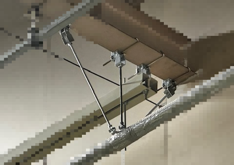 異なる揺れの建屋間をつなぐ部分は、変位吸収が必須です - 支持金具の見直しと補強