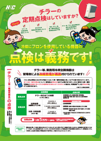 冷媒にフロンを使用している機器の点検は義務です。冷媒管理について詳しくまとめたパンフレットです。