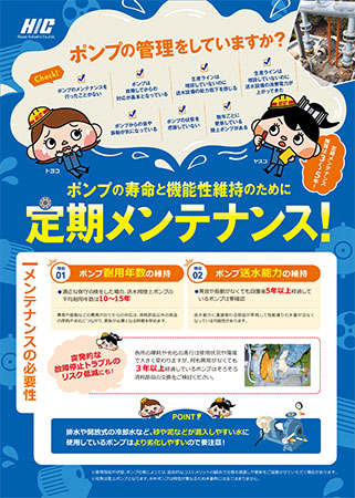 ポンプの定期メンテナンスについてのパンフレットです。ポンプの主用部品の交換時期や不良時の弊害についてまとめた一覧表を掲載!